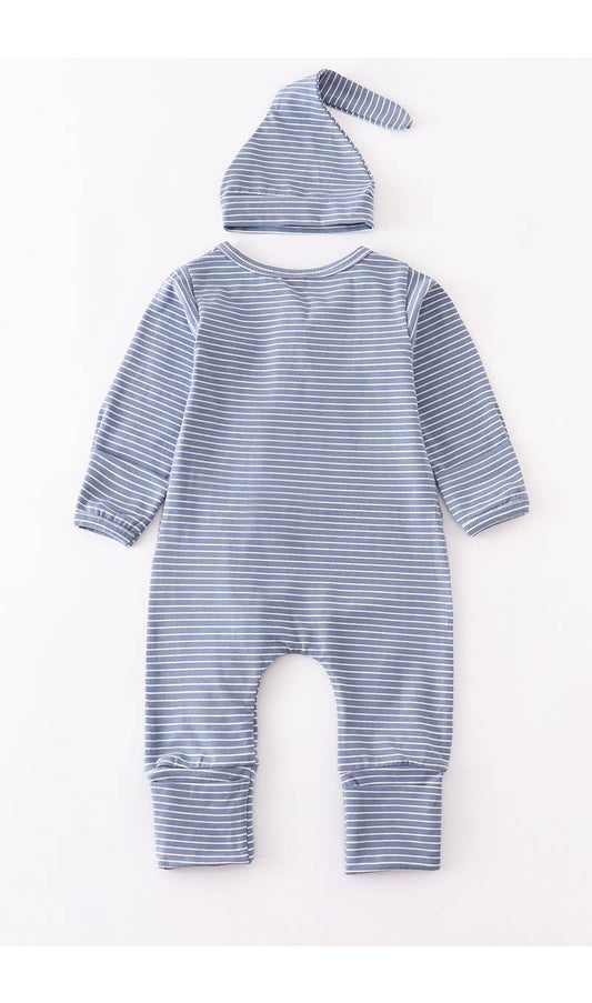Blue stripe baby romper with hat | Honeydew